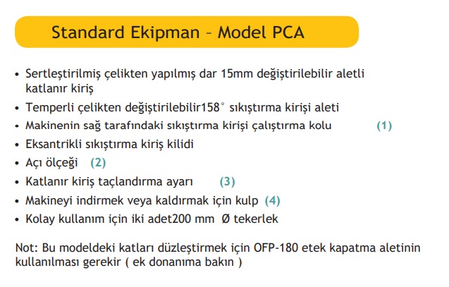 | Kelepçe kirişi açıkığı (mm) | 60 mm |